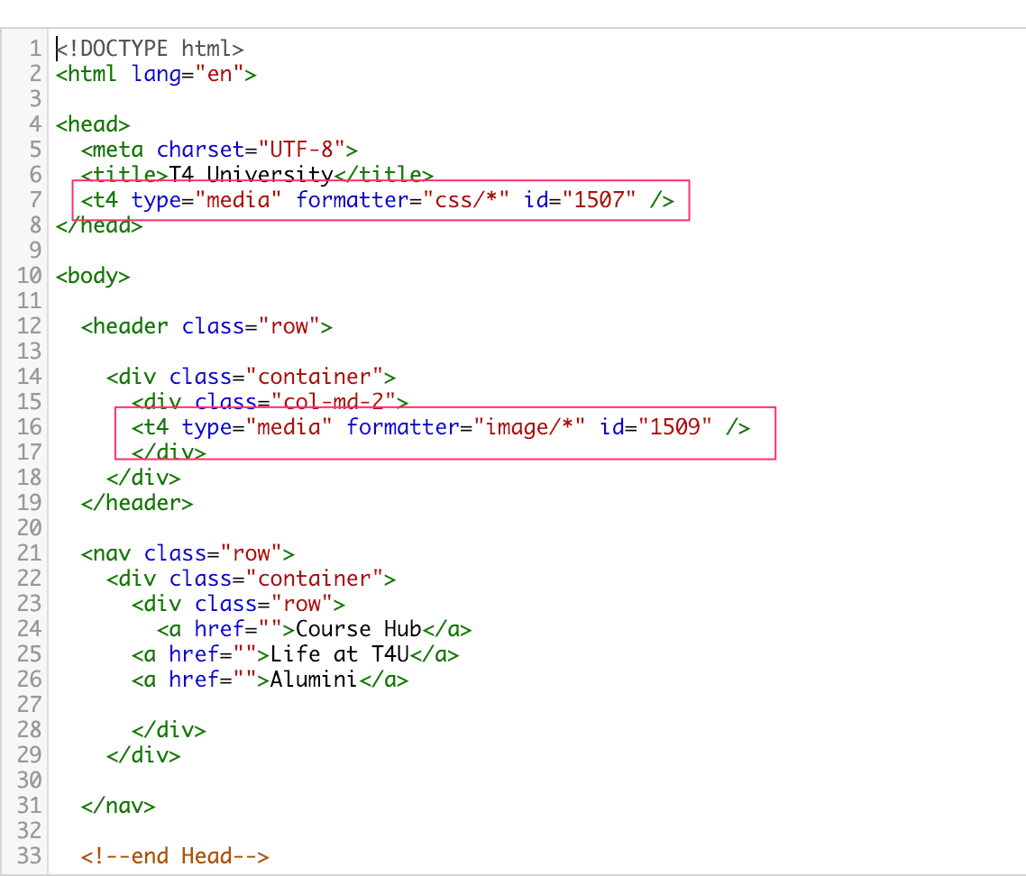 To do this, we’ll use T4 Media Tags as to act as placeholders for these files until the page is previewed or published (the ID number that you see will be different):