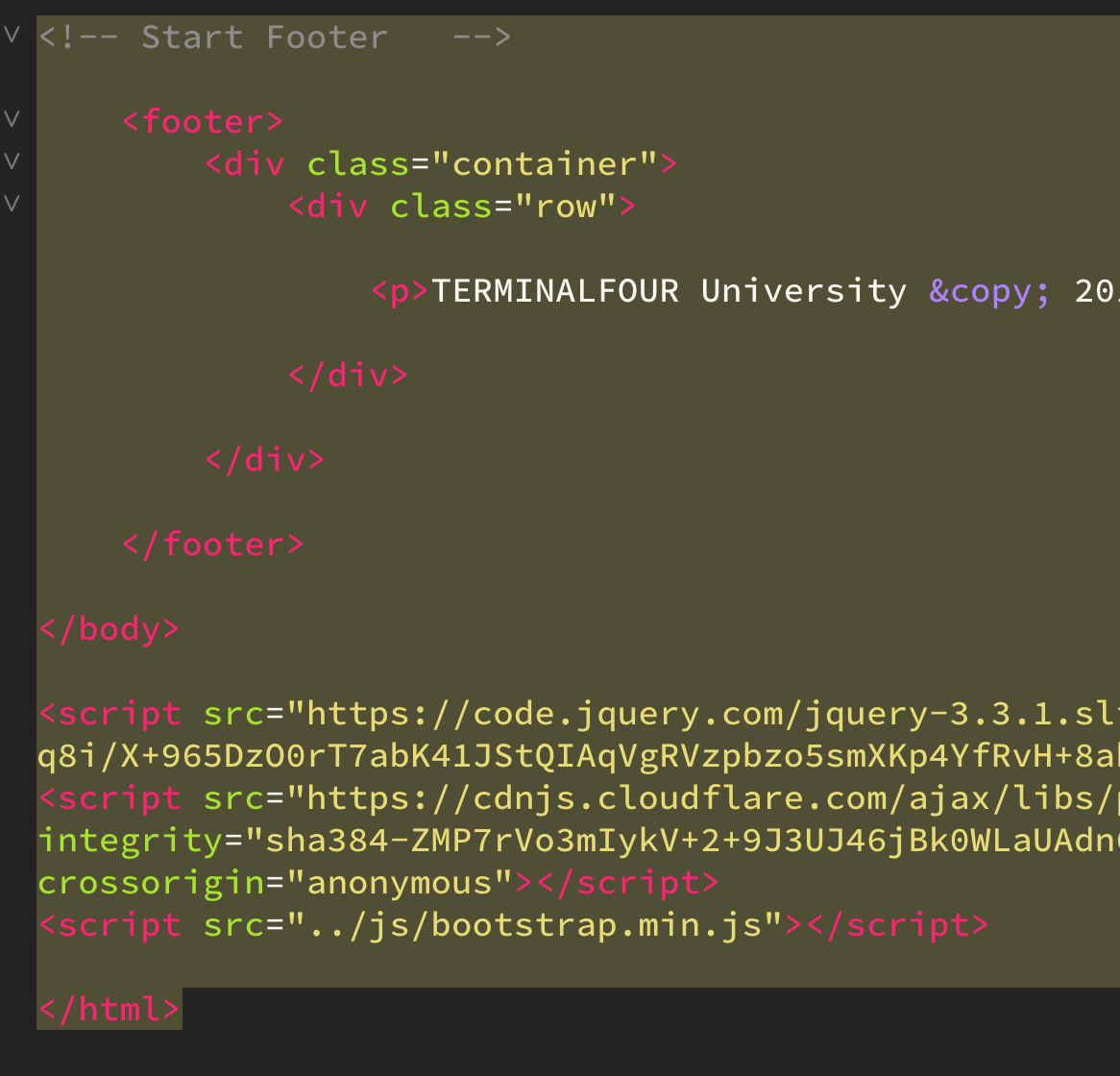 Next, we’ll add the Footer code by selecting and copying everything from the "Start Footer" comment down: