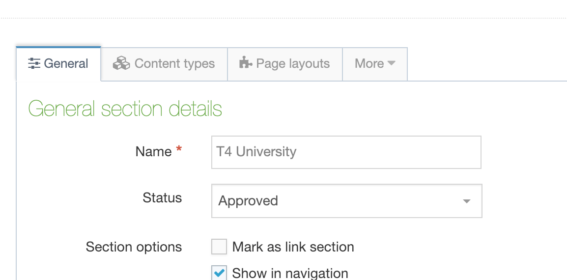 When it’s saved, the T4 University Section will appear will below the Root Section.
