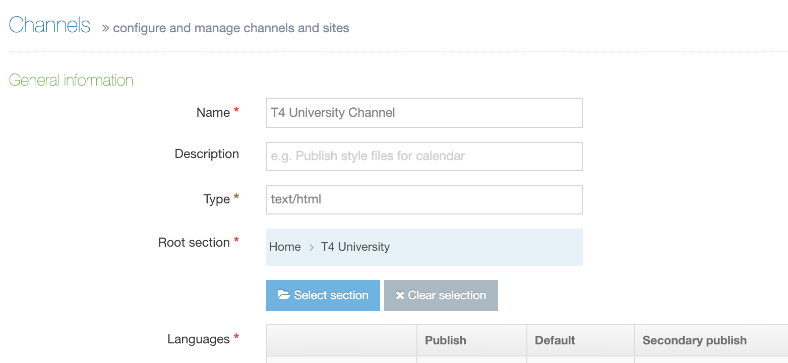 - Type – we’re going to add "text/html" here which will match the type we are going to add to our Content Layouts. This tells the Channel how content should be presented on publish