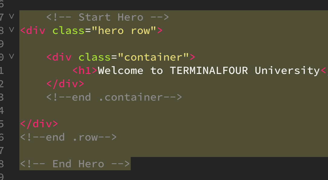 Back in the original index page, copy the text between the "Start Hero" and "End Hero" comments: