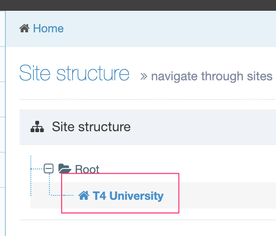 The next step is to enable the "Hero" Content Type for the site. From the Site Structure, select the site: