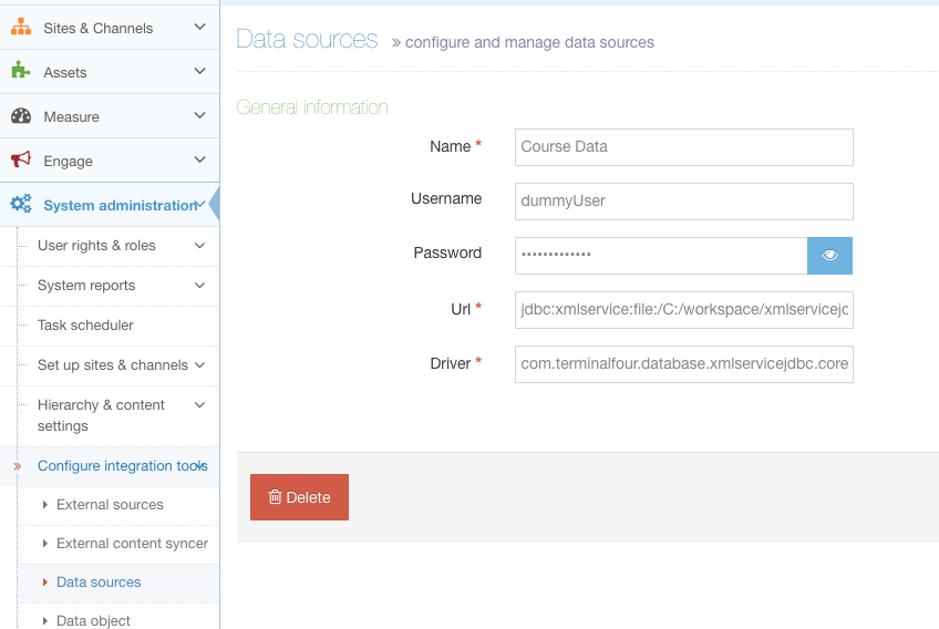 Once the XML has been successfully set up as a Data Source, the content is extracted with SQL (Structured Query Language). To add the SQL go to System Administration > Configure Integration Tools > External Content Syncer.
