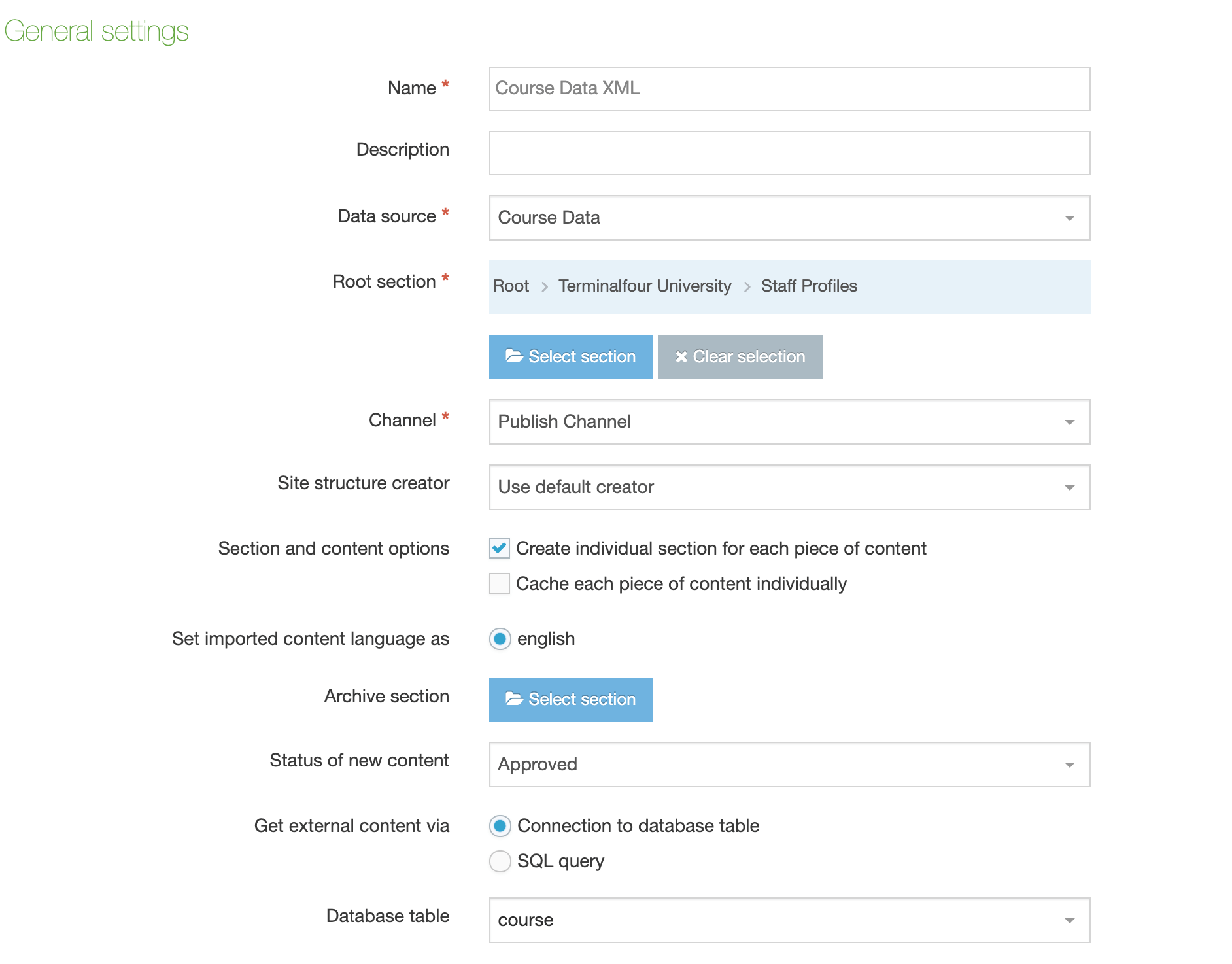 These are the steps to follow when creating syncing an XML file with Terminalfour.