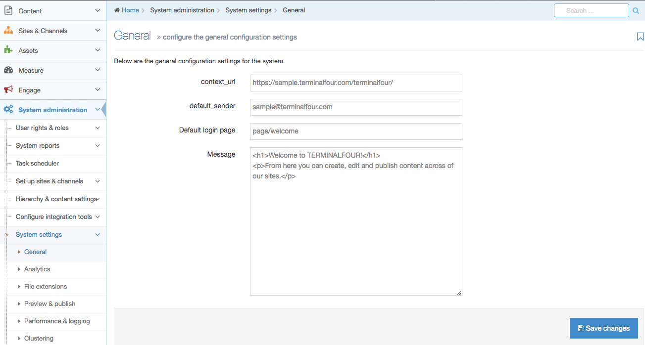| default_sender | This is the default address that is used for emails generated and sent by TERMINALFOUR. |