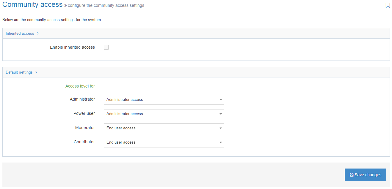 | Enable inherited access | Enables new users to automatically gain community access based on the default settings below |