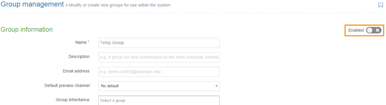- Disable: Typically you disable a Group temporarily. The important aspect is the flexibility of this feature – you can turn it on and turn it off, yet still modify to suit your needs. Where a Group has been granted Edit Rights to a Section, disabling the Group will remove access to the Sections for each Group member.