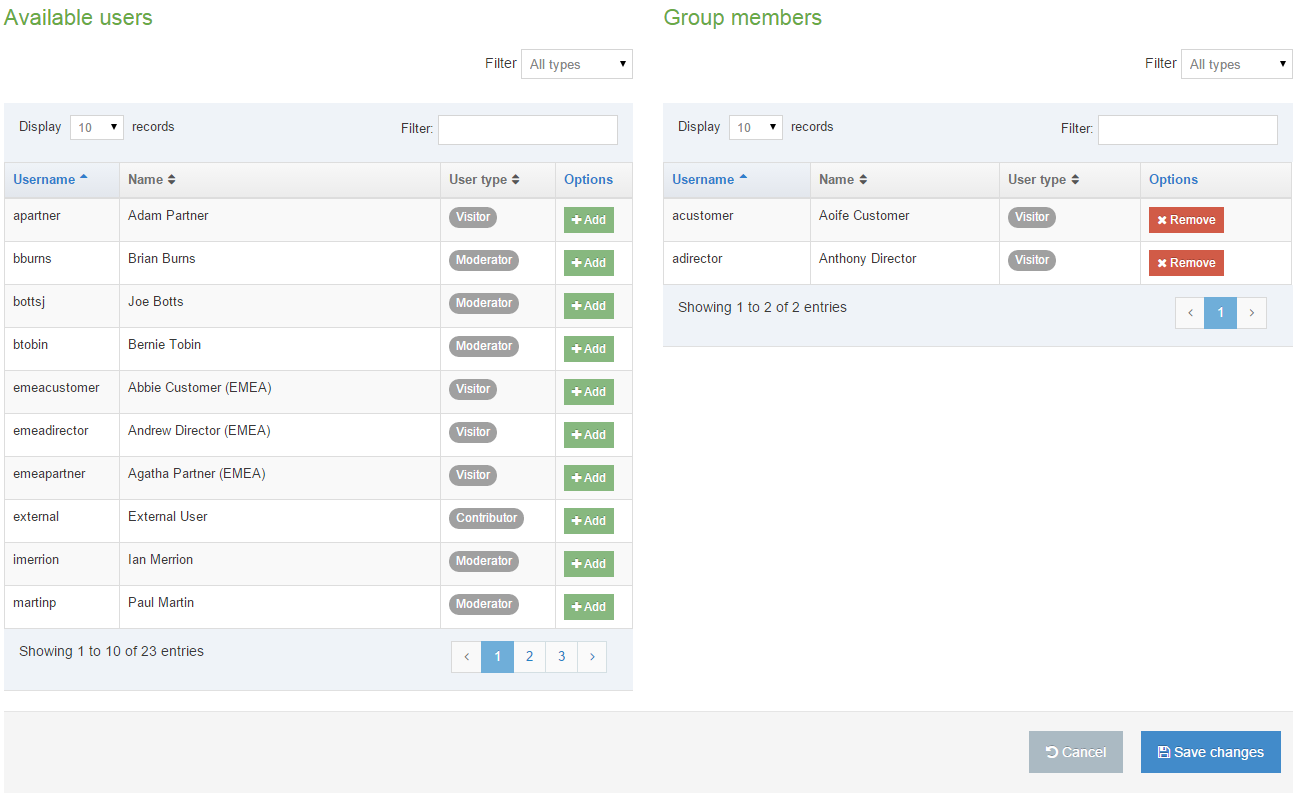 Select the members of the new Group from the list of available Users. This is shown on the left side of the screen.