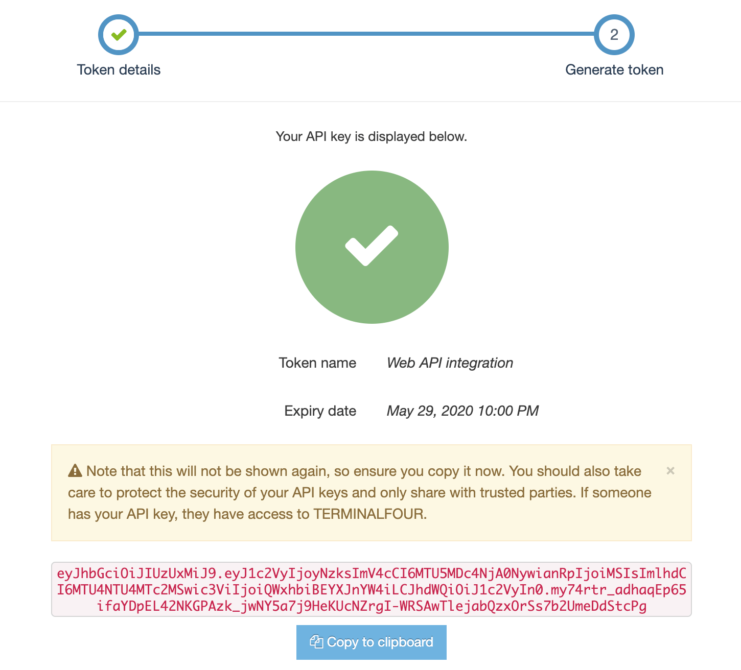 You can create an API token to securely authenticate a Terminalfour user without passing a username and password.