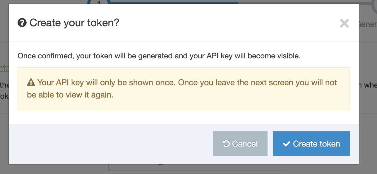 Click Next to proceed. A modal will be displayed to confirm the creation of a token: