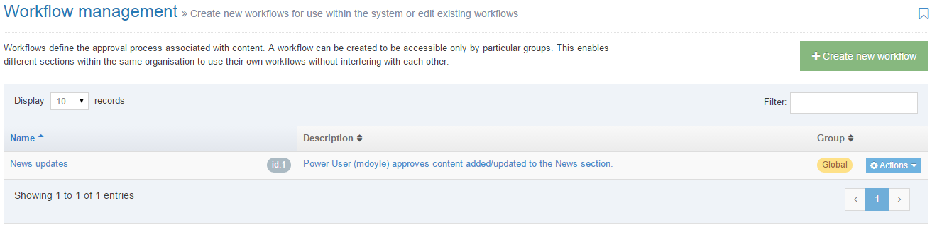 | Description | This is an optional entry. This is used by the filter on the Workflow listing and can be useful for finding Workflows. |
