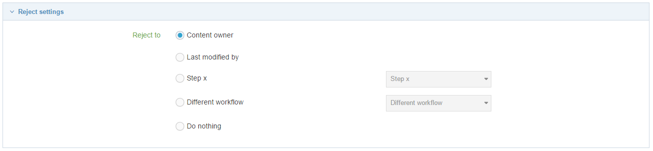 - Content owner: only the content owner, specified in the Section or content options, can approve the content. If no owner is selected, the content can only be approved by an Administrator.