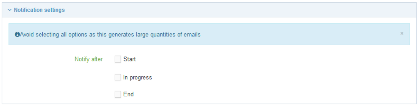 - Check the workflow step notification settings: Check that the workflow step is configured for email notifications at the correct stages. This is configured in the workflow step Notification settings.