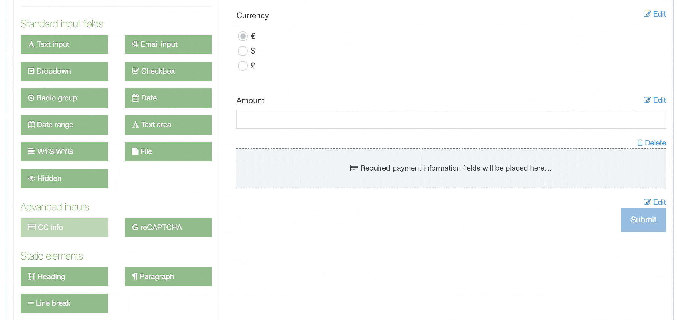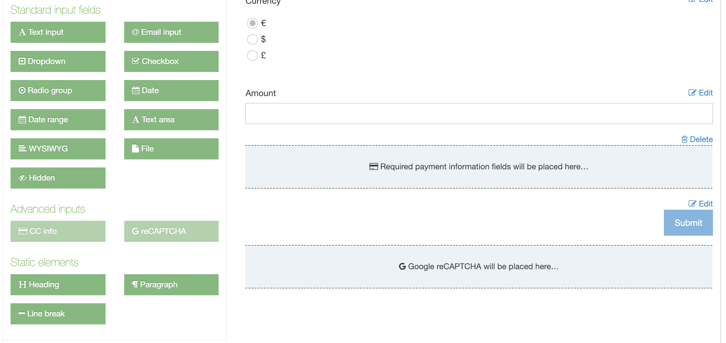 | It is possible to delete the reCAPTCHA field | It is not possible to delete the reCAPTCHA fieldAdding a | |