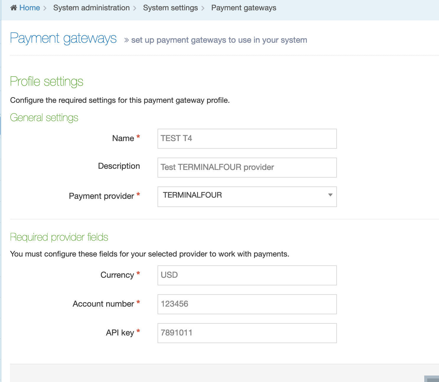 If you are an Administrator and you want to process online payments with your forms, then the Payment Gateway must be configured in System Administration > System Settings > Payment Gateways.