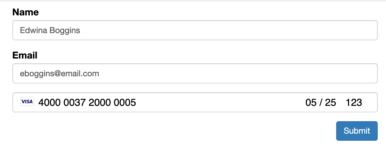 It's recommended that you thoroughly test your form with a test Payment Gateway before making it live with a production Payment Gateway. Since real credit card numbers cannot be used in test mode Stripe has provided a list of test credit card numbers you can use.