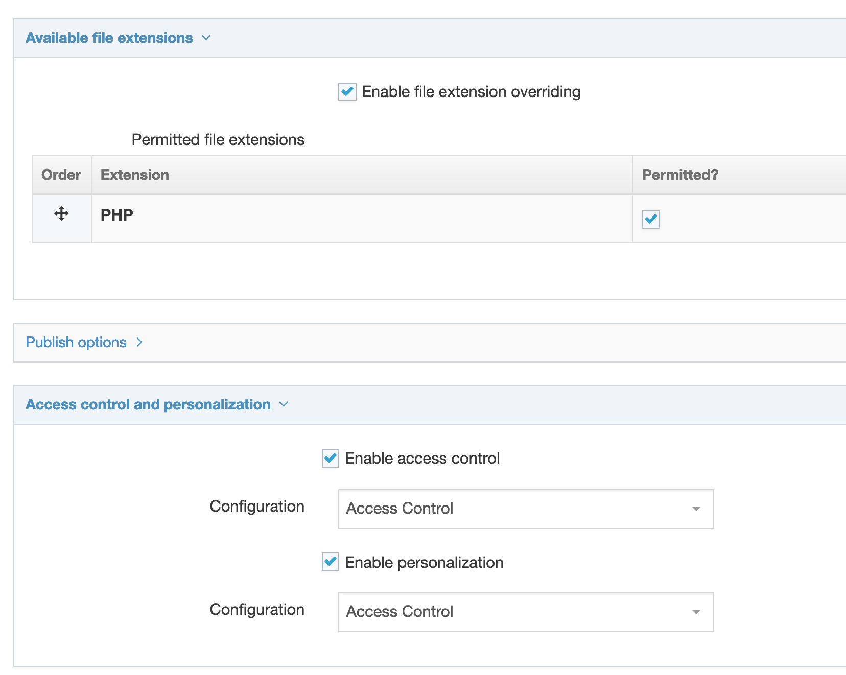 - configure the Access Control settings to use the Access Control Content Type
