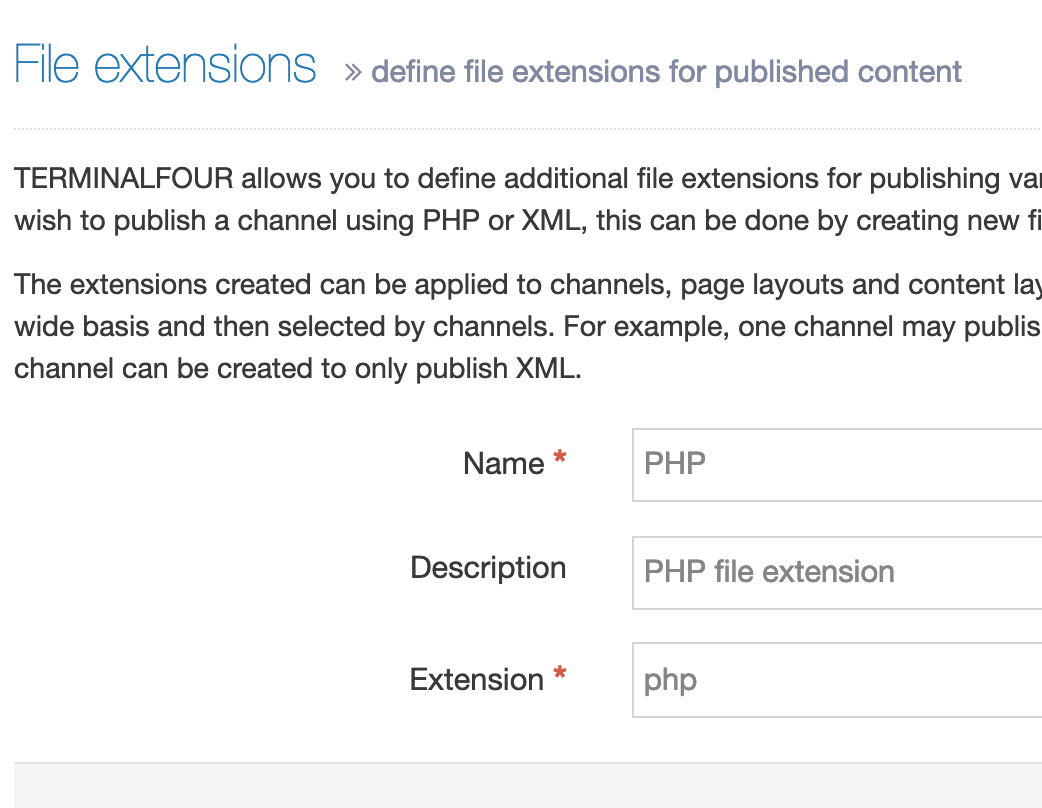 Go to System Administration > System Settings > File Extensions. If you are using PHP and this file extension has not already been added, select Create New File Extension.