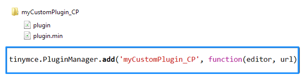 tinymce.PluginManager.add('myCustomPlugin_CP', function(editor, url) {})