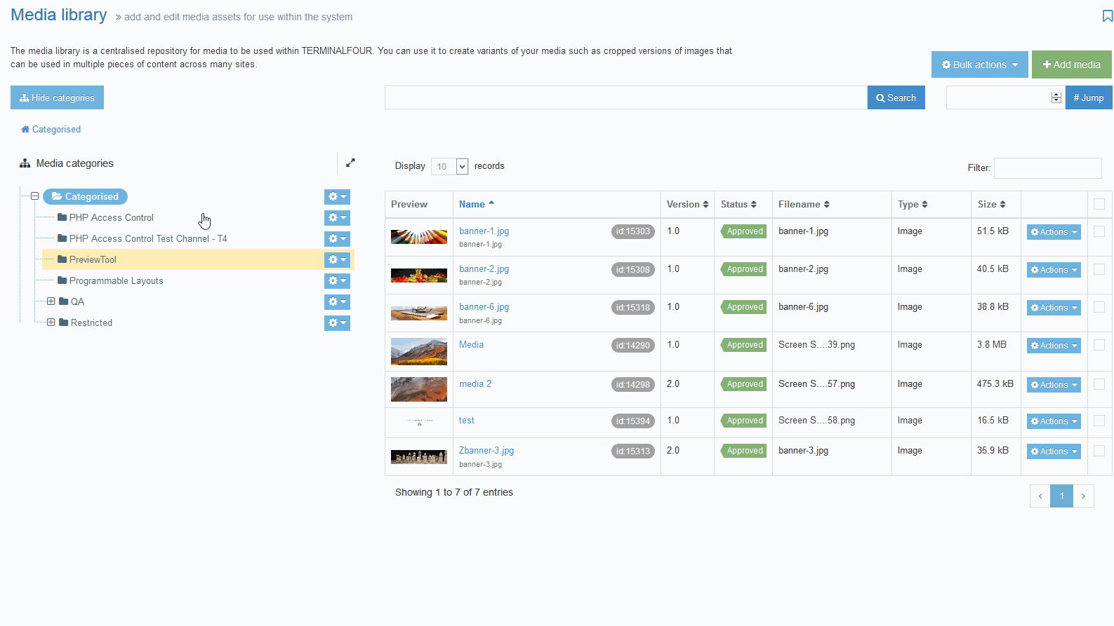 | mediaList | String | Pipe(|) separated list of rules used to limit access to media files e.g. "/secure/category/=admin|/secure/other/=student" will restrict contents of /secure/category to users with the admin group and contents of /secure/other to members of the student group. This should be generated by the Get All Media Restriction Rules navigation object. |