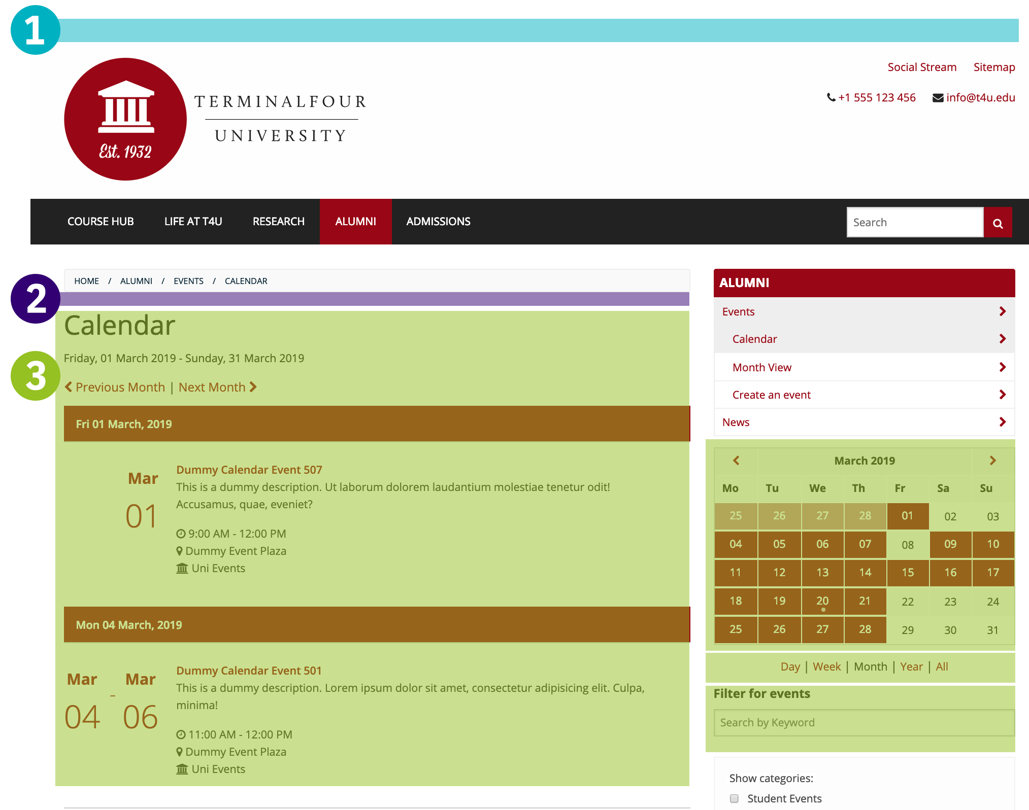 You can see an example of the Events Calendar on the Terminalfour Sample Site.