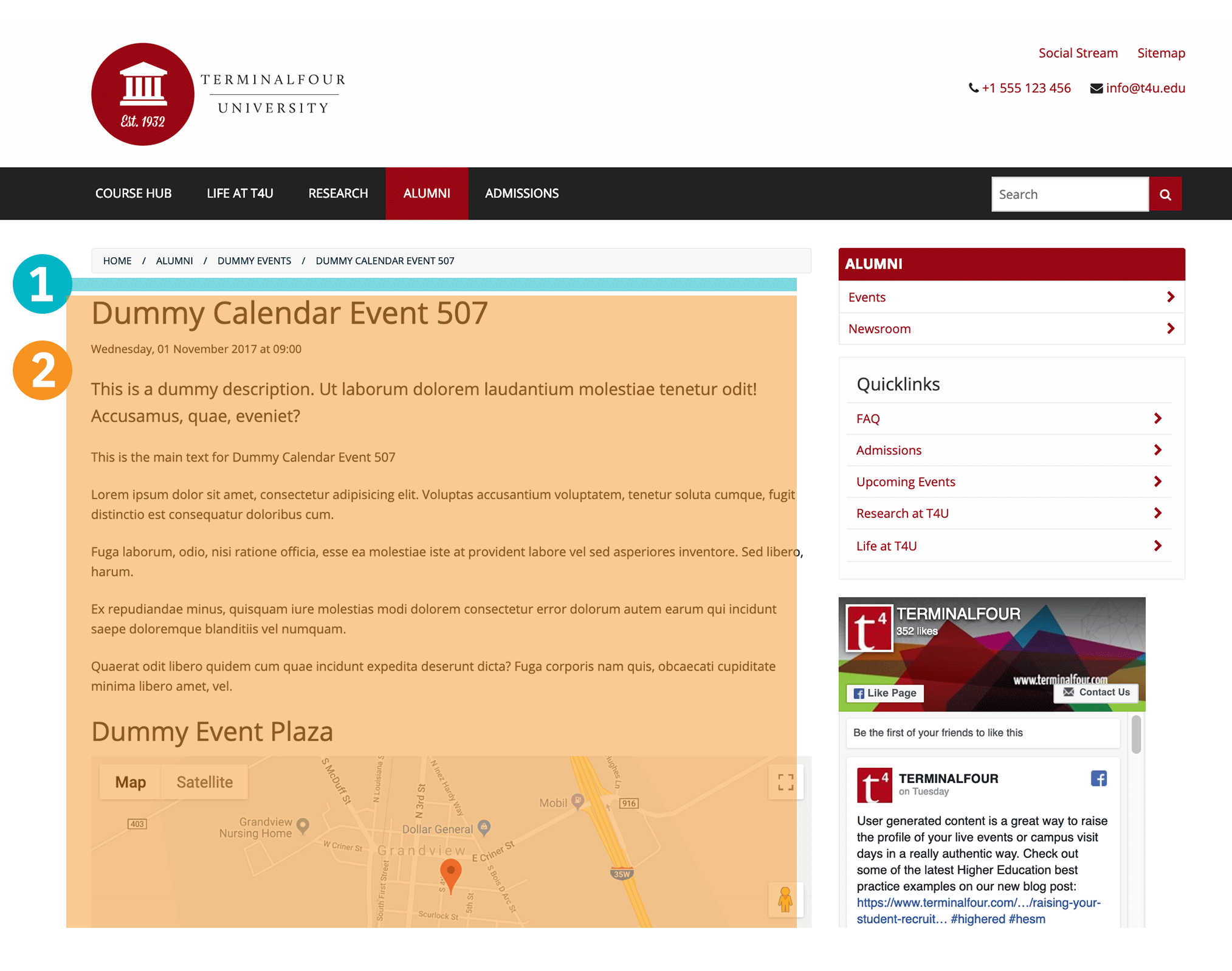 A calendar needs events so let's start by setting up the event sources. The Events Calendar Module supports events as Terminalfour Content Items and iCal and Google Calendar Events. Once we have a source ready we'll tackle the module installation itself, starting with its configuration and then the design.