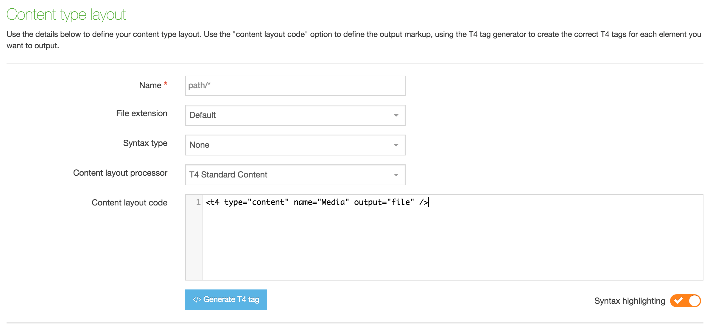 | Media type options | Parse for T4 tags |