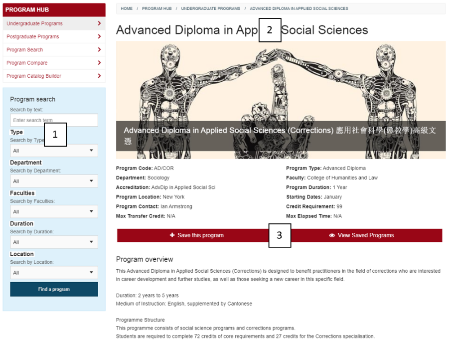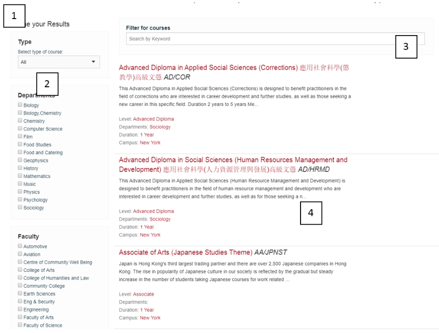 - Program Search View (Sidebar oriented – Linked to main search page)
