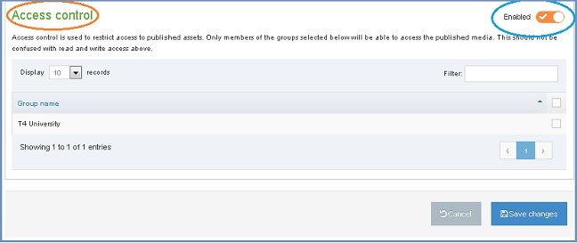 Access control is used to restrict access to Published assets. If enabled, the options available will depend on the Access Control Content Type and Access Control that has been configured.