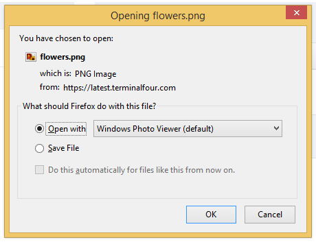 Open the file with an image viewer, or select Save file, and click OK. Save the download to a location of your choice.