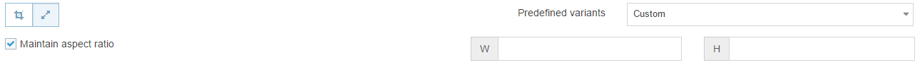 - Crop size: If specific image dimensions are required, select Exact dimensions, or one of the Predefined variant sizes; otherwise leave this as Unconstrained.
