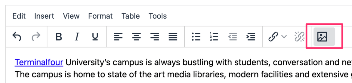 From version 8.3.12, Terminalfour now uses TinyMCE v5.