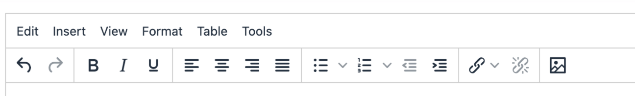 | Horizontal line | Inserts a horizontal rule into the editor. | ||||