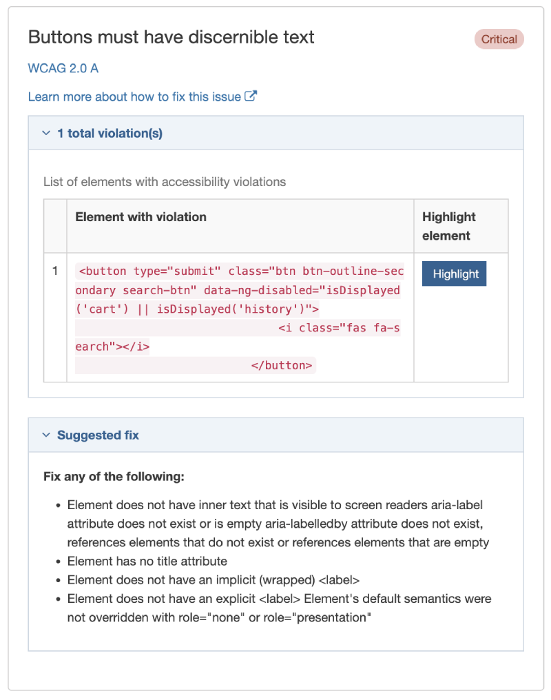 - A link to an external site where you can learn more about this violation and how to fix it