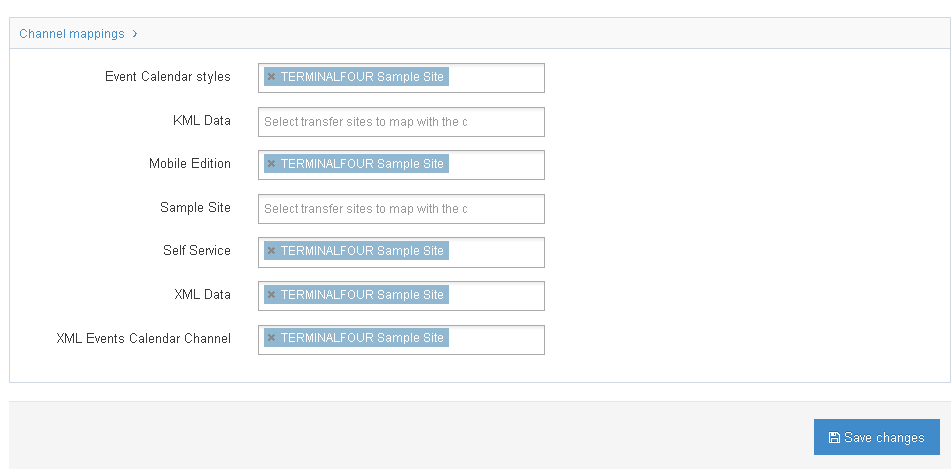 | Enable transfer now | Starts a transfer of the relevant channel each time something is published via a manual or scheduled publish or publish now |